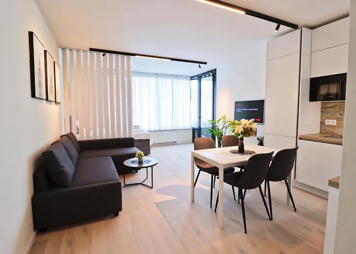 Utulny Byt Na Smichove, Praha 5アパ-トメントはダンシング・ハウスから0.9kmに位置し,宿泊施設中ののWiFi付きの客室を提供しています. 客室には冷蔵庫,オ-ブン と台所用品付き器具でいっぱいの台所があります.または座席,衛星放送チャンネルの薄型テレビ とテレビがあります.